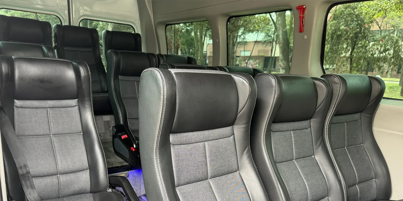 El microbús de 15 pasajeros es una solución práctica y eficiente para el transporte de grupos medianos. Ideal para trayectos empresariales, escolares o turísticos . Su diseño moderno y equipamiento funcional garantizan un viaje cómodo, seguro y agradable.