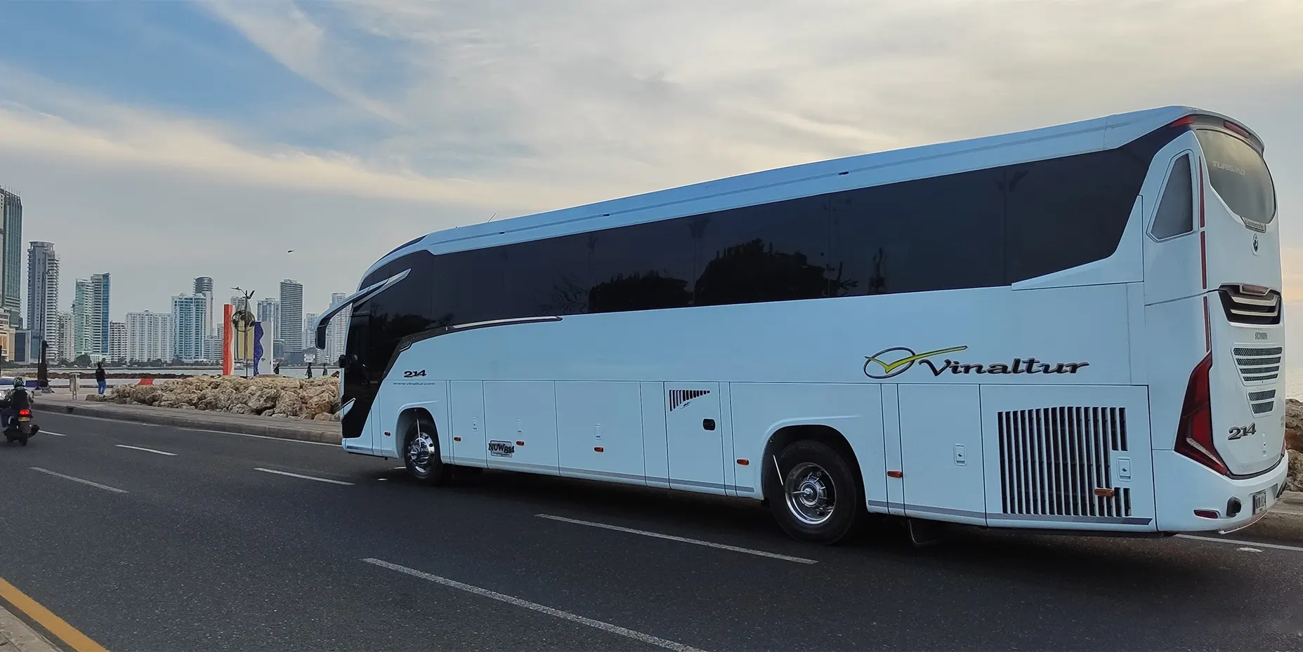 En VINALTUR no solo transportamos personas, creamos experiencias seguras, cómodas y confiables. Con más de 30 años de trayectoria en el sector del transporte especial de pasajeros, hemos acompañado a instituciones educativas, empresas y agencias de turismo en sus necesidades de movilidad. Nuestro equipo humano, altamente comprometido, y el uso de tecnología de vanguardia nos han permitido posicionarnos como una de las empresas líderes en Bogotá. Más que un trayecto, ofrecemos tranquilidad y confianza en cada viaje.